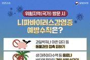 뉴한국방송뉴스통신사 신유철기자 기자 | 양평군 보건소는 질병관리청이 니파바이러스감염증을 제1급 법정감염병 및 검역감염병으로 신규 지정함에 따라 군민 안전을 위해 감염병 예방수칙 준수를 당부한다고 밝혔다. 니파바이러스감염증은 1998년 말레이시아에서 처음 보고된 인수공통감염병으로, 감염된 동물(박쥐, 돼지 등)과의 접촉, 오염된 식품 섭취, 환자의 체액과 밀접 접촉을 통해 사람 간 전파가 가능하다. 인체 감염 시 40~75%에 이르는 높은 치명률을 보이는 중증 급성감염병으로, 현재 인도와 방글라데시 등에서 산발적으로 발생하고 있다. 국내 유입 가능성은 아직 낮으나, 군민의 안전을 위해 △과일박쥐나 아픈 돼지 등 동물과의 접촉 피하기 △생 대추야자수액 등 음료나 바닥에 떨어진 과일 섭취 삼가기 △아픈 환자의 혈액이나 체액 등 직접 접촉 피하기 △비누와 물로 30초 이상 손 씻기 생활화하기 △씻지 않은 손으로 눈, 코, 입 만지지 않기 등 개인위생수칙 준수가 무엇보다 중요하다. 배명석 보건소장은 “군민 여러분께서는 해외 방문 시 각별히 주의하시고, 이상 증상 발생 시 즉시 보건소에 신고해 주시기 바란다”며, “군민의