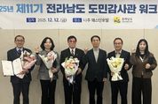 뉴한국방송뉴스통신사 신다은기자 기자 | 전라남도는 ‘2025 제11기 전라남도 도민감사관 역량강화 워크숍’을 최근 열어 도민이 직접 참여하는 청렴·감사 활동을 강화하고 현장 중심의 감사 역량을 높였다고 밝혔다. 워크숍은 시군 공무원 100명이 참석한 가운데 우수 도민감사관 표창, 청렴특강, 질의응답 순으로 진행됐다. 한 해 동안 활동한 도민감사관들이 한자리에 모여 성과를 공유하고 실무 역량을 높이는 의미 있는 시간이 됐다. 도민감사관 제도는 2003년 명예감사관 제도로 시작해 2018년 도민참여형 감사제도 강화를 위해 명칭을 도민감사관으로 변경했다. 현재까지 총 863명의 도민감사관이 활동하며 감사행정에 참여하고 있다. 워크숍에서 도지사 표창을 받은 7명의 우수 도민감사관은 시군 공사와 사업 과정에서의 문제점·불편사항 제보, 다른 지역의 우수 사례 제안, 시군 종합감사 과정에서의 간담회 소통 등을 통해 감사행정의 신뢰를 높이고 도정 발전에 기여한 공로를 인정받았다. 특강에서는 ‘미래사회의 경쟁력, 청렴’을 주제로 디지털 전환 시대의 청렴 가치와 공공부문 투명성 강화 전략,