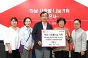 뉴한국방송뉴스통신사 신유철기자 기자 | 지난 1일 청운사는 하남 사랑愛나눔 성품 및 성금으로 라면 100박스, 백미 10kg 100포, 성금 500만원(1,060만원 상당)을 기탁하고 기탁식을 가졌다. 청운사는 2020년부터 관내 취약계층을 위한 성품 및 성금 기탁을 통해 꾸준한 나눔 문화를 실천하고 있으며, 올해도 하남시에 성품 및 성금을 기탁하며 나눔을 실천했다. 이날 기탁식에는 이현재 하남시장을 비롯하여 청운사 노혜원 사무장, 조순례 신도회장, 김영숙 부회장, 전인숙 총무가 참석하여 자리를 빛냈다. 노혜원 사무장은“지역내 어려운 이웃들에게 조금이나마 도움이 되길 바라고, 풍성한 한가위 명절이 되길 바란다”고 전했다. 이현재 하남시장은“2020년부터 끝임없이 나눔을 실천해 준 청운사에 감사드리며, 어려운 이웃이 따뜻한 추석이 되실 수 있도록 잘 전달하겠다”고 말했다. 이날 기탁한 성금 및 성품은 동 행정복지센터 및 하남시푸드뱅크를 통해 취약계층에게 배부될 예정이다. [뉴스출처 : 경기도 하남시]