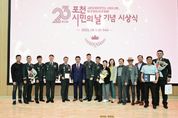 뉴한국방송뉴스통신사 신유철기자 기자 | 포천시는 지난 1일 시청 대회의실에서 제23회 포천시민의 날을 기념해 2025년 한 해 동안 지역 발전에 기여한 유공자들을 대상으로 표창 수여식을 개최했다. 이날 행사에는 백영현 시장을 비롯해 임종훈 포천시의회 의장, 김용태 국회의원을 대신한 김길주 사무국장과 수상자 등 100여 명이 참석해 자리를 빛냈다. 올해 표창은 △경기도지사 표창 8명 △포천시장 표창 65명 △포천시의회 의장 표창 14명 △국회의원 표창 14명 등 총 101명에게 수여했다. 수상자들은 지역사회 봉사, 문화·체육 진흥, 농업 발전, 지역경제 활성화 등 다양한 분야에서 묵묵히 헌신한 공로를 인정받았다. 백영현 포천시장은 “포천의 오늘을 있게 한 주인공은 바로 시민 여러분”이라며, “각자의 자리에서 보여주신 헌신 덕분에 포천이 함께 성장하는 희망의 도시로 나아갈 수 있었다. 앞으로도 모두가 행복한 도시를 만들기 위해 최선을 다하겠다”고 말했다. 한편, 제23회 포천시민의 날 기념 행사는 10월 12일 포천종합운동장에서 열릴 예정이다. [뉴스출처 : 경기도 포천시]