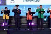 뉴한국방송뉴스통신사 김성의 기자 | 광주 광산구가 시민 모두가 함께 즐기고 소통하며 화합할 수 있는 다채로운 축제를 열었다. 광산구는 30일 광주여자대학교 유니버시아드 체육관에서 ‘시민의 힘으로! 함께 그리는 광산의 미래’라는 주제로 제34회 광산구민의 날 기념행사를 개최했다고 30일 밝혔다. 이날 행사는 1부와 2부로 나눠 진행했으며, △구민의 날 기념식 △동별 장기자랑 대항전 △광산마을공동체한마당 △홍보·체험·전시 공간 △다양한 먹거리 공간으로 구성됐다. 광산구는 시민 중심의 행사, 의전 간소화를 원칙으로 매년 구민의 날 행사를 시민이 주인공인 축제를 구성했다. 기념식은 분야별 시민 대표 축하 인사와 각종 재난과 수해복구 현장에서 이웃의 안전과 생명을 지켜준 자원봉사 대표들이 구민 헌장을 낭독했다. 이어 구정 발전에 이바지한 지역 인사와 시민에게 공로상과 구민상을 수여했다. 특별공로상은 유한봉 대한노인회 광산구지회장이 받았으며, 광산구민상은 △강용선 광산구지역사회보장협의체 전 민간위원장 △백영실 광산구 새마을부녀회장 △곽상민 첨단1동 주민자치회장 △기보배 광주여자대학교