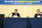 뉴한국방송뉴스통신사 김성의 기자 | 광주광역시와 전라남도는 2일 전남 나주시 뉴나주씨티호텔에서 ‘광주전남 행정통합 추진을 위한 제6차 추진협의체 회의’를 개최했다. 이번 회의에는 강기정 광주시장과 김영록 전남지사를 비롯해 양 시·도 공동위원장, 추진협의체 위원 등 20여명이 참석했다. 회의에서는 지난달 30일 국회에 발의된 ‘전남광주 통합특별시 설치를 위한 특별법안’의 주요 내용 공유와 국회 심의 대응 방안, 향후 추진 일정 등을 중심으로 심도 있는 논의가 이뤄졌다. 특별법안은 광주광역시와 전라남도를 하나의 통합특별시로 설치하기 위한 법적 근거를 마련하는 것으로, 통합특별시의 지위와 권한, 행정·재정 특례, 국가 지원 사항 등 387개 조문(375개 특례)으로 구성돼 있다. 인공지능·에너지·문화수도를 비전으로, 첨단산업 육성, 국가 기간산업 경쟁력 강화, 농어촌의 균형 있는 발전 등을 담아 수도권에 대응하는 남부권 성장 축으로 육성하겠다는 의지를 명확히 하고 있다. 이번 회의는 국회 특별법 발의 이후 처음 열리는 추진협의체 회의로, 특별법 통과까지 광주전남의 핵심 특례사항이 충실히 반영될 수 있도록