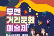 뉴한국방송뉴스통신사 신다은기자 기자 | 전남 무안군은 오는 24일 남악 중앙공원 일원에서 무안거리문화예술제를 개최한다. 무안거리문화예술제는 ‘문화 캔버스 – 도시, 예술로 물들다’ 라는 주제로 기존의 음악 공연 중심 거리예술에서 벗어나 다양한 분야의 지역예술가와 군민이 함께 어우러지는 참여형 문화예술제로 마련됐다. 일상 속 거리 공간을 예술로 채워 군민들에게 색다른 문화 향유 기회를 제공하는 것이 이번 행사의 가장 큰 특징이다. ▲무안군립국악원과 무안국악협회가 선보이는 ‘국악한마당’을 시작으로 ▲관내 청소년이 꾸미는 ‘꿈나무 콘서트’ ▲어린이들을 위한 ‘책 읽어주는 산타할머니’ ▲가족 단위 관람객이 함께 즐길 수 있는 ‘밖으로 나온 영화관’ 등 남녀노소 모두가 즐길 수 있는 프로그램으로 풍성하게 구성됐다. 또한 가수 경서, 정재욱과 뮤지컬 가수 루이스초이, 박소연 등이 출연하는 뮤직콘서트가 펼쳐져 연말 분위기를 한층 고조시킬 예정이다. 그 밖에도 관내 작가들과 함께하는 컵·접시 만들기, 크리스마스 리스 만들기, 캘리그라피 달력만들기, 솟대 만들기 등 다양한 체험 프로그램이 운영되며, 목포대학교 미술