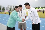 뉴한국방송뉴스통신사 신유철기자 기자 | 이상일 용인특례시장은 17일 일본 도쿄 국립경기장에서 열린 2025 세계육상선수권대회 남자 높이뛰기 결선에서 은메달을 차지한 우상혁 선수에게 전화를 걸어 축하와 격려의 뜻을 전했다. 우상혁 선수는 16일 저녁에 열린 남자 높이뛰기 결선에서 올 시즌 개인 최고 기록과 같은 2m34를 넘어 은메달을 획득했다. 금메달은 2m36을 기록한 지난해 파리올림픽 챔피언 해미시 커(뉴질랜드)에게 돌아갔다. 우 선수는 올해 국제대회 7연승을 기록하며 최고의 기량을 선보였으나, 지난달 종아리 근막 손상이란 부상을 당해 최상의 컨디션이 유지되지 못한 상태에서 경기에 나섰다. 그럼에도 우 선수는 세계 최고선수들이 겨루는 큰 대회에서 은메달을 따냈다. 이로써 우 선수는 2022년 미국 유진 대회 은메달에 이어 한국 선수로는 최초로 세계육상선수권에서 2개의 메달을 보유한 선수로 기록됐다. 이상일 시장은 우 선수와의 통화에서 “지난달 부상으로 발목에 통증이 있는 상태에서 대회에 나간 걸로 아는 데 그럼에도 불구하고 최선을 다해 값진 은메달을 획득한 것은 매우 감동적"이라며 “늘 밝은 모