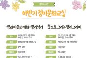 뉴한국방송뉴스통신사 신유철기자 기자 | 이천시 청미도서관은 지역 주민들의 문화 향유와 여가생활을 지원하기 위해 오는 10월부터 하반기 청미문화교실을 운영한다. 이번 프로그램은 ▲색채를 통해 마음을 돌아보는 ‘색과 마음의 대화, 컬러 심리’(10.16.~11.13. 매주 목)와 ▲창의적인 글씨 예술을 배우는 ‘붓으로 그리는 캘리그라피’(10.17.~11.28. 매주 금) 두 강좌로 진행된다. 각 과정은 청미도서관 1층 세미나실에서 열리며, 참가 신청은 9월 23일 오전 10시부터 이천시 통합도서관 누리집에서 선착순으로 할 수 있다. 도서관 관계자는 “도서관에서 청명한 가을을 함께하시길 바란다”라고 밝혔다. [뉴스출처 : 경기도 이천시]