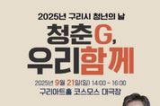 뉴한국방송뉴스통신사 신유철기자 기자 | 구리시는 오는 9월 21일 오후 2시 구리아트홀 코스모스 대극장에서 ‘2025 구리시 청년의 날- 청춘G, 우리 함께’ 행사를 개최한다. 이번 행사는 법정기념일인 청년의 날을 기념하여, 청년세대가 직면한 현실적 고민과 정서적 어려움을 함께 나누고 희망과 긍정의 에너지를 전하기 위해 마련됐다. 연세대학교 심리학과 이동귀 교수가 ‘관계에 지친 당신을 위한 대화’를 주제로 특별 강연을 진행하며, 청년들에게 희망과 위로의 메시지를 전하는 그룹 ‘이스트샤인’의 힐링 콘서트가 이어진다. 구리시 청년 및 청년정책에 관심 있는 시민이라면 누구나 참여할 수 있으며, 8세 이상부터 입장이 가능하다. 참여를 희망하는 시민은 QR코드를 통해 사전등록을 할 수 있으며, 당일 현장 등록도 가능하다. 이에 더해 시는 소셜 네트워크 서비스(SNS) 공유 이벤트 추첨을 통해 100명에게 커피 기프티콘을 제공한다는 계획이다. 백경현 구리시장은 “이번 청년의 날 기념행사는 청년들이 서로의 고민을 나누고 마음의 위로와 희망을 발견하는 뜻깊은 시간이 될 것”이라며 “앞으로도 청년이 행