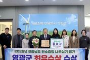 뉴한국방송뉴스통신사 신다은기자 기자 | 영광군은 12월 12일 전라남도가 주관하는‘2025년도 나무심기 평가’에서 최우수상을 수상했다. 2022년 최우수상, 2023년 대상, 2024년 최우수상에 이어 4년 연속 수상으로, 영광군의 지속적인 노력과 지역 주민들의 적극적인 참여가 결실을 맺은 결과다. 이번 평가는 전라남도 내 22개 시·군에서 추진한 산림 정책 전반을 대상으로 진행됐으며, 조성·관리·정책참여 등 총 3개 분야, 7개 항목에 대한 서류심사를 통해 우수 시군을 선정했다. 영광군은 3개 평가 분야에서 모두 높은 점수를 획득하며, 특히 식목일 행사를 비롯한 읍·면별 특색 있는 꽃동산 및 꽃길 조성, 산림 방문 후 SNS 인증을 통한 산림 가치 홍보 등의 활동에서 뛰어난 성과를 보였다. 이로 인해 나무심고 가꾸기 분위기 확산과 자발적인 도민 참여 확대가 이루어졌으며, 아름다운 전남 만들기에 기여한 점에서 우수한 평가를 받았다. 군 관계자는“4년 연속 우수기관으로 선정된 것은 기후위기와 탄소중립 시대에 산림의 중요성이 더욱 강조되는 가운데, 지역 주민들의 관심과 노력이 함께한 결과”