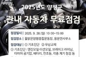 뉴한국방송뉴스통신사 신유철기자 기자 | 양평군은 오는 28일 오전 10시부터 오후 3시까지 관내에 주소를 둔 차량 소유자를 대상으로 ‘2025년 자동차 무료점검 서비스’를 실시한다고 밝혔다. 이번 점검은 경기도 자동차전문정비사업조합 양평군지회에서 주관하고 양평군이 지원하며, 조합 소속 숙련된 정비사들이 참여한다. 점검 장소는 지난해와 동일하게 양평군 물맑은종합운동장 주차장과 용문면사무소 주차장에서 진행된다. 점검 서비스는 엔진오일, 냉각수, 브레이크 상태, 타이어 공기압, 전조등 및 배터리 등의 기초 진단과 와이퍼, 브레이크 오일 등 소모품 점검 및 무상 교체가 포함된다. 단, 외제차와 1톤 트럭 이상 차량은 제외된다. 이미행 교통과장은 “관내 주민들이 안전하게 차량을 이용할 수 있도록 최선을 다할 것이며, 많은 군민들이 이번 기회를 통해 차량 상태를 점검하고 안전 운행에 도움이 되길 바란다”고 말했다. 또한 “무료점검 서비스 관련 문의는 경기도 자동차전문정비사업조합 양평군지회로 연락하면 된다”고 덧붙였다. [뉴스출처 : 경기도 양평군]