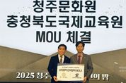 뉴한국방송뉴스통신사 권영분기자 기자 | 충청북도교육청 직속기관인 국제교육원(원장 서강석)은 10일 오후 6시, 청주문화원(원장 강전섭)과 도내 이주배경학생 및 가족의 문화예술 역량 함양과 지역 문화예술교육 활성화를 위한 업무협약을 체결했다고 밝혔다. 협약식에는 서강석 원장과 강전섭 청주문화원장을 비롯해 4명의 관계자가 참석했다. 이번 협약은 이주배경학생들이 다양한 문화예술 활동을 체험하고 지역사회와 자연스럽게 소통할 수 있는 기반을 마련하기 위해 추진됐으며, 양 기관의 프로그램과 자원을 공유‧활용하여 지속 가능한 협력 체계를 구축하는 것을 목표로 했다. 주요 내용은 ▲문화예술 기반 인적‧물적 자원 상호 활용 ▲양 기관이 추진하는 문화예술 분야 사업 홍보 협조 ▲이주배경학생 및 가족 대상 문화예술 공연 관람 지원 등이다. 국제교육원은 이번 협약을 통해 학생들이 문화예술을 매개로 지역사회와 교류하고, 다양한 경험을 쌓으며 문화적 감수성을 높일 수 있도록 지원할 계획이다. 서강석 국제교육원장은 “이주배경학생과 가족들이 문화예술 활동을 통해 지역사회와 더욱 가까워지고, 일상 속에서 문화를 즐길