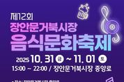 뉴한국방송뉴스통신사 신유철기자 기자 | 수원 장안문거북시장 중앙로에서 10월 31일부터 11월 1일까지 ‘제12회 장안문거북시장 음식문화축제’가 열린다. 10월 31일 오후 3시부터 식전행사가 열리고, 오후 6시 개막식과 축하공연이 진행된다. 11월 1일에는 지역 예술단체와 시민 동아리의 공연과 함께 댄스·노래 경연대회 ‘우리동네 오디션’이 이어진다. 행사 기간에 시장 내 주요 거리에서는 상인들이 준비한 다양한 음식과 특산품을 만나볼 수 있다. 장안문 거북시장의 전통 막걸리 ‘장안문 별주’ 홍보부스와 장안문 시장 활성화 프로젝트를 진행하는 아주대학교 파란학기제 ‘터틀랩스’팀의 팝업스토어 등이 운영될 예정이다. 수원시 관계자는 “전통시장 활성화를 위해 애써주시는 상인회에 감사드린다”며 “지역경제 활성화를 위한 지원을 아끼지 않겠다”고 말했다. [뉴스출처 : 경기도 수원시]