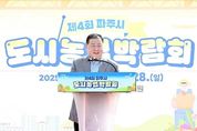 뉴한국방송뉴스통신사 신유철기자 기자 | 파주시는 운정건강공원에서 지난 26일부터 3일간 ‘젊은 농부와 도시가 만나다’를 주제로 열린 ‘제4회 파주시도시농업박람회’를 성황리에 마치고, 도시민과 농촌이 하나 되는 자리를 통해 파주시 도시농업의 미래 가능성을 제시했다고 밝혔다. 전시공간과 체험공간을 운영, 도심에서는 보기 어려운 목화, 대추나무, 레몬, 까치콩, 달가지 등 여러 가지 농작물 전시와 도시농업 작품 전시를 통해 도시민이 농업에 쉽게 접근하고 이해할 수 있도록 꾸몄다. 삼색경단꼬치·바람떡 만들기, 다육정원·관엽정원 만들기, 전통 다식 등 다양한 체험 프로그램과 거리공연(버스킹), 동극, 비눗방울 공연 등의 가족단위 공연 프로그램은 방문객들의 뜨거운 반응을 이끌어 냈다. 또한 시에서 배출한 도시농업관리사들의 숨은 기량을 뽐내는 ‘제2회 도시농업관리사 작품 전시전’과 관내 4개 중고등학교 학생들이 직접 참여한 ‘청소년 도시농업 경연대회’, 파주시 어린이집에서 직접 재배한 ‘벼 화분 전시’는 관람객들의 눈을 즐겁게 했다. 박람회는 잔디광장 텃밭 정원에 심었던 여러 가지 쌈 채소와 도시농업관리사 전시 작품들을 나
