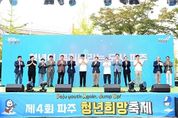 뉴한국방송뉴스통신사 신유철기자 기자 | 파주시는 지난 27일 금릉역 앞 중앙광장에서 열린 ‘제4회 파주 청년희망축제’가 시민들의 뜨거운 호응 속에 성공적으로 마무리됐다고 밝혔다. 올해 축제는 ‘파주청년, 다시 도약하다!(Paju Youth Again, Jump Up!)’을 주제로, 도약하는 청년세대의 열정과 활력을 시민과 함께 나누는 장으로 마련됐다. 이번 축제의 백미는 개막식과 함께 진행된 ‘파주 청년 비전선포식’이었다. 청년정책협의체 공동위원장은 무대에서 ‘청년이 뿌리내리는 도시, 파주’라는 비전을 선포하며, 청년과 지역사회가 함께 나아갈 미래의 방향을 제시했다. 특히 청년들이 직접 낭독한 선언문과 청년친화도시 지정을 위한 기념행사는 파주시의 확고한 의지를 대외적으로 알리는 계기가 됐다. 오후 2시부터 8시까지 진행된 이번 축제는 ▲사전공연 ▲청년 골든벨 ▲청년 가요제 ▲청년공간 특별강좌 ▲프리미엄 수제 맥주 시음 ▲청년창업가 플리마켓 ▲무료 체험공간 ▲대형 ‘파랑’ 포토존 등 다채로운 프로그램으로 꾸려졌다. 가요제 무대에서는 청년들의 끼와 열정이 빛났으며, 청년창업가 판매공간 및 수제 맥주 시