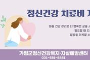 뉴한국방송뉴스통신사 신유철기자 기자 | 가평군정신건강복지센터는 정신질환 치료 과정에서 발생하는 병원비 부담을 덜어주기 위해 치료비 지원사업을 운영중이라고 3일 밝혔다. 치료비 지원사업은 연령대와 치료 상황에 따라 △마음건강케어 △청소년‧청년 마인드케어 △어르신 마인드케어 등 3개 유형으로 나뉜다. ‘마음건강케어’는 조현병, 우울‧불안 등 정신질환으로 진단받은 주민이 대상이다. 질병코드 F20~F48로 진단받고 정신건강복지센터에 등록된 기준 중위소득 120% 이하 주민이라면 신청할 수 있다. 본인부담금과 본인 일부부담금을 포함해 연간 최대 36만원의 치료비를 지원한다. ‘청소년‧청년 마인드케어’는 15세부터 34세(1991~2011년생)를 위한 사업이다. 질병코드 F20~F48로 진단받고 최근 5년 이내(2022~2026년) 처음 진단받은 경우 신청 가능하며, 본인 일부부담금에 대해 1인당 최대 36만원을 지원한다. ‘어르신 마인드케어’는 65세 이상(1961년 이전 출생) 주민을 대상으로 한다. 우울증 등 질병코드 F32~F39로 진단받은 경우 본인 일부부담금에 대해 1인당 최대 36만원까지 치료비