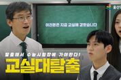 뉴한국방송뉴스통신사 신유철기자 기자 | 울산광역시교육청은 대학수학능력시험을 앞두고 수험생을 응원하는 영상을 제작해 6일 울산교육청 유튜브에 공개했다. 10분 40초 분량의 영상에는 천창수 교육감과 함월고등학교 3학년 학생 2명이 함께 출연해, 교실을 배경으로 임무를 수행하며 따뜻한 응원 메시지를 전한다. 영상은 ‘교실 탈출’이라는 주제로 방 탈출 게임 형식으로 구성됐다. 교실 안에서 주어진 문제를 단계적으로 해결해 교실을 탈출하는 방식으로, 교육감과 학생들이 협동해 문제를 풀어나간다. 영상의 도입부는 ‘오늘은 11월 13일 목요일, 대학수학능력시험일입니다. 여러분은 지금 교실에 갇혔습니다. 주어진 문제들을 해결해 교실을 탈출하세요!’라는 안내로 시작해 몰입감을 높인다. ‘수능 당일 가장 피해야 할 행동은?’ 등 수능 상황 관련 내용이 출제된다. 참여자들은 수험표, 신분증, 아날로그 시계, 도시락 등 수능 필수 준비물을 실제로 활용해 정답을 찾는 과정이 담겨 있다. 학생들은 문제를 풀며 사물함 비밀번호 단서를 모으고, 자물쇠를 열어 수험생에게 전하는 편지를 찾으
