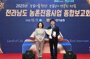 뉴한국방송뉴스통신사 신다은기자 기자 | 고흥군은 ‘2025년 농촌진흥사업 종합평가’에서 중앙단위 우수농업기술센터 장려상을 수상했다고 밝혔다. 농촌진흥사업 종합평가는 매년 전국 시군 농업기술센터를 대상으로 농촌지도사업 혁신전략 추진 실적, 현장 애로 해소를 위한 신기술 확산 실적 등 9개 평가지표를 종합적으로 평가해 우수기관을 선정한다. 고흥군은 올해 지역 여건에 맞춘 신기술 보급, 농작업 안전재해 예방, 병해충 발생 선제적 대응 등 타 지자체와 차별화된 경쟁력 있는 농촌진흥사업을 추진했다. 특히, 6개 분야에서 총 34개 사업을 체계적으로 추진해 농업 현장의 실질적인 변화와 성과를 이끌어냈다는 평가를 받았다. 이러한 성과를 바탕으로 고흥군은 올해 한국농업전문지도연구회 발전 우수기관 우수상, 전남 학생 과제경진대회 단체 예능·특기과제 우수상, 청년 농업인 육성 지원사업 성과보고 품평회 3위 등 다양한 분야에서도 성과를 인정받았다. 군 농업기술센터 관계자는 “이번 수상은 관내 농업인과 전 직원이 협력해 이뤄낸 뜻깊은 결과”라며 “앞으로도 지속 가능한 농업 기반을 구축하고 농수축산업의 고부가