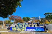뉴한국방송뉴스통신사 신유철기자 기자 | 사천시 사천읍 기관장협의회는 10월 31일 사천시청 노을광장에서 10월 정기회의를 개최하고, 회의에 앞서 내년 고시 예정인 '제5차 국가철도망 구축계획'에 ‘사천우주항공 국가철도’ 반영을 촉구하는 캠페인을 전개했다. 이날 기관장협의회 회원들은 ‘사천우주항공철도! 제5차 국가철도망 구축계획에 반영하라’는 구호가 적힌 손현수막을 들고 캠페인을 진행하며 시민들의 관심과 동참을 호소했다. 이번 캠페인은 사천이 대한민국 우주항공 중심도시로 도약하기 위해서는 진주-사천-삼천포를 잇는 사천우주항공선 철도망 구축이 반드시 필요하다는 인식 아래 추진됐다. 기관장협의회 관계자는 “우주항공청 개청과 함께 관련 산업시설 조성이 본격화되는 만큼, 철도망 구축은 우주항공산업의 인력·물류 이동의 핵심 인프라가 될 것”이라며 국가계획 반영의 필요성을 강조했다. 한편, 이날 회의에서는 지역 현안사업 논의와 함께 지역 발전을 위한 협력 방안이 논의됐으며, 기관장들은 앞으로도 사천의 미래 성장 동력 확보를 위해 적극적인 홍보와 캠페인을 이어가기로 했다. [뉴스출처 : 경상남도사천시]