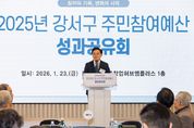 뉴한국방송뉴스통신사 신유철기자 기자 | 서울 강서구는 지난 23일 서울창업허브 엠플러스(마곡중앙8로 14)에서 주민참여예산위원회 및 각 동 주민자치회장 50여 명이 참석한 가운데 ‘2025년 강서구 주민참여예산 성과공유회’를 개최했다. 주민참여예산 제도는 구 예산 편성 과정에 주민이 직접 참여해 의견을 제시하고 예산 우선순위를 결정하는 제도로, 2011년부터 시행됐다. 이번 성과공유회는 제도 시행 이래 최초로 개최돼, 지난해 추진한 주민참여예산제 운영 성과를 공유하고 올해 제도 운영 방향을 모색하는 자리를 가졌다. 행사는 주민참여예산제 활성화 유공 표창과 2025년 한 해의 성과를 공유하는 순으로 진행됐다. 2025년 사업 공모에는 총 155건의 주민 제안이 접수됐으며, 위원회 심사와 주민 6,736명의 투표를 거쳐 최종 29건(총 17억 5,720만 원 규모)의 사업이 선정됐다. 선정된 사업으로는 차량 등 사고위험을 줄이는 ‘주민들이 안전한 허준공원 가는 길’, 구립도서관 이용 시 낙상사고 방지를 위한 ‘논슬립 강서구 도서관’ , 레이더를 활용한 도로하부 정밀조사 ‘지반침하 점검 및