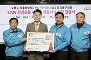뉴한국방송뉴스통신사 신유철기자 기자 | 서울 도봉구는 지난 1월 21일 서울특별시자동차전문정비사업조합 도봉구지회(약칭: 카포스 도봉구지회)로부터 따뜻한 겨울나기 이웃돕기 성금 100만 원을 전달받았다. 오언석 도봉구청장은 “카포스 도봉구지회의 소중한 마음에 감사드린다. 전해주신 성금은 꼭 필요한 이웃들에게 잘 전달될 수 있도록 하겠다.”라고 말했다. 카포스 도봉구지회(지회장 이평관)는 매년 구에 따뜻한 겨울나기 성금을 기부해 오고 있다. 성금 기부 외에도 명절에 구민의 안전한 귀성길 운행을 위해 차량 점검을 무상으로 실시하고 있다. [뉴스출처 : 서울특별시 도봉구]
