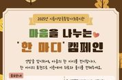 뉴한국방송뉴스통신사 신유철기자 기자 | 시흥시장곡종합사회복지관은 연말을 맞아 지역사회에 따뜻한 마음을 전하기 위한 ‘마음을 나누는 한 마디’ 캠페인을 진행한다. 이번 캠페인은 이웃을 향한 응원의 말, 위로의 말, 사랑의 말을 담은 짧은 문장을 시민들로부터 응모 받아 서로에게 위로와 용기를 건네는 나눔의 장을 만들기 위해 마련됐다. 참여자는 직접 창작한 문장 또는 문학 작품 속 인용문 중 마음을 전하고 싶은 한 문장을 제출할 수 있다. 응모 기간은 11월 3일부터 11월 14일까지이며, 시흥시민이라면 누구나 참여할 수 있다. 참여 방법은 시흥시장곡종합사회복지관 1층 복도 현장 신청 또는 온라인으로 하면 된다. 선정된 문장은 내부 심사를 거쳐 캘리그래피 작품으로 제작되며, 오는 12월 시흥시장곡종합사회복지관 복도갤러리에서 전시된다. 전시된 작품은 시민들에게 한 해를 따뜻하게 마무리할 수 있는 작은 위로의 메시지로 전달될 전망이다. 시흥시장곡종합사회복지관 관계자는 “짧은 문장이지만, 시민 한 사람 한 사람의 따뜻한 마음이 모여 이웃에게 큰 위로가 될 것”이라며 “많은 시민이 이번 캠페인에 참여해 따뜻한
