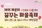 뉴한국방송뉴스통신사 신유철기자 기자 | 해운대구는 10월 25일 대천공원에서 복지·평생학습·주민자치 3개 분야 통합 박람회이자 해운대 대표 마을축제인 ‘2025 꿈꾸는 마을축제’를 개최한다. ‘해운대 꿈꾸는 마을축제’는 2019년부터 평생학습·주민자치 박람회와 복지박람회를 통합해 운영해왔으며, 남녀노소 누구나 함께 배우고 즐기며 교류하는 구민 화합의 장으로 자리해왔다. 올해로 5회째를 맞는 이번 축제는 ‘사랑으로 마음을 잇다’를 주제로 구민 간 유대와 공동체 문화를 확산하는 데 뜻을 두고 있다. 특히 이번 행사는 새롭게 단장한 대천공원에서 열리는 첫 공식 축제로, 도심 속 녹지공간을 배경으로 구민들에게 힐링과 즐거움을 선사할 예정이다. 주민자치 분야에서는 18개 동이 참여해 ‘우리 동네의 재발견’을 주제로 각 동의 숨은 명소와 자랑거리를 소개하는 ‘우리동에 가면~’ 스탬프 투어, 전시·체험 부스, 주민자치 경연대회 등을 운영한다. 평생학습 분야에서는 관내 평생학습기관과 학습동아리가 참여해 도자기 물레 체험, 컬러로 알아보는 기질 성향 찾기, 타로 상담 등 20여 개의 다채로운 체험 프로