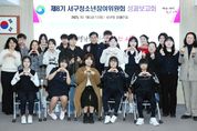 뉴한국방송뉴스통신사 신태공 기자 | 대전 서구는 구청 장태산실에서 제8기 서구청소년참여위원회 성과보고 및 정책 제안 회의를 진행했다고 20일 전했다. 이날 보고회에는 김낙철 부구청장을 비롯해 청소년참여위원과 관계 공무원 등이 참석해, 올 한 해 활동 성과를 공유하고 정책 제안 내용을 논의했다. 청소년참여위원들은 △자원봉사 참여 확대를 위한 인센티브 강화 △문화 및 여가 지원 확대 △주말 체육 프로그램 활성화 등 청소년의 생활 여건 개선과 직결된 3건의 정책을 제안해 주목을 받았다. 제8기 서구청소년참여위원회는 관내 중·고등학생과 대학생 등 청소년 15명으로 구성돼 있다. 이들은 정책 과제 발굴과 설문조사, 정책 제안 대회 참가, 청소년문화의집 모니터링 등 청소년 권익 증진을 위한 다양한 활동을 추진해 왔다. 김낙철 부구청장은 “청소년들이 지역 정책 과정에 직접 참여하며 의견을 제시하는 경험은 의미가 크다”며 “앞으로도 청소년 참여 확대를 위한 제도적 기반을 지속적으로 마련해 나가겠다”고 말했다. [뉴스출처 : 대전시서구]