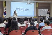 뉴한국방송뉴스통신사 권영분기자 기자 | 충청북도교육청 직속기관 국제교육원 부설 영재교육원은 11월 3일과 4일, 충주와 청주에서 각각 영어영재교육 수료식을 열고, 2025학년도 교육과정을 성공적으로 마무리했다. 초등학교 5학년부터 중학교 2학년 영어영재교육 참여 학생 68명(충주 36명, 청주 32명)을 비롯해 보호자와 담당 교사가 참석해, 한 해 동안의 성과를 함께 나누는 시간을 가졌다. 교육활동 동영상 시청을 시작으로, 학생들의 수료 소감 발표, 수료증 수여 등의 순서로 진행됐으며, 학생 발표 시간에는 큰 호응이 이어졌다. 탄금중학교 1학년 이하율 학생은 “매주 원어민 선생님들과 영어로 학습할 수 있어 유익하고 즐거운 시간이었어요. 벌써 종강이라 아쉽고, 내년에도 꼭 참여하고 싶어요.”라며 소감을 전했다. 올해 영어영재교육은 ▲원어민 교사와 함께하는 영어 수업 ▲리더십‧진로‧세계시민교육 특강 ▲유네스코 아시아태평양 국제이해교육원, 국립외교원 방문 등 현장 체험 학습 ▲충북 청소년 국제포럼 등 다양한 경험을 할 수 있는 과정으로 운영됐다. 참가 학생들은 환경, 사회와 법, 문학, 뉴스
