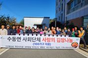 뉴한국방송뉴스통신사 신유철기자 기자 | 남양주시는 10일 수동면에서 7개 사회단체가 함께 취약계층을 위한 ‘사랑의 김장 나눔’ 행사를 진행했다고 밝혔다. 이번 행사는 경기도농수산진흥원이 주관한 ‘경기농식품 나눔문화 확산사업’ 공모에 수동면 주민자치회가 선정돼, 농산물 소비 촉진 및 취약계층 대상 지역공동체의 나눔 문화 확산을 위해 마련됐다. 행사에는 수동면 이장협의회, 주민자치회, 새마을남녀지도자, 체육회, 바르게살기위원회, 적십자회, 지역사회보장협의체 등 7개 단체, 80여 명이 힘을 모아 김치를 정성껏 담갔다. 이날 마련된 김치 100통은 수동면 관내 독거노인, 장애인, 복지사각지대에 놓인 저소득층 가정 등에 전달됐다. 특히 각 사회단체별로 회원들이 김장 김치를 직접 전달하며 이웃의 안부를 살폈다. 이진춘 수동면장은 “경기도의 지원과 지역 7개 단체의 협력이 더해져 이웃에게 따뜻한 마음을 전할 수 있었다”며 “앞으로도 정성과 마음을 담은 나눔이 계속될 수 있도록 적극 지원하겠다”고 말했다. 수동면은 앞으로도 이웃과 함께하는 따뜻한 나눔과 돌봄이 일상 속에 스며들 수 있도록 지속적인