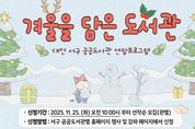 뉴한국방송뉴스통신사 신태공 기자 | 대전 서구는 연말을 맞아 관내 5개 공공도서관(갈마·가수원·둔산·월평·어린이도서관)에서 12월 6일부터 12월 14일까지 지역 주민을 위한 '연말 특별프로그램'을 운영한다고 밝혔다. 이번 프로그램은 겨울 감성을 느낄 수 있는 체험형 강좌와 온라인 북 큐레이션으로 구성됐다. 체험 프로그램은 성인 대상 ‘나만의 반려식물, 토피어리 만들기’와 초등 1~4학년 대상 ‘진짜 같은 크리스마스 케이크 비누 만들기’ 등 두 강좌로 진행된다. 또한 각 도서관 홈페이지에서는 '첫눈을 기다리며 읽는 책들'을 주제로 한 온라인 북 큐레이션을 함께 운영해 계절에 맞는 도서 정보를 제공할 예정이다. 참가 신청은 11월 25일 오전 10시부터 각 도서관 홈페이지를 통해 선착순 접수로 진행된다. 세부 일정과 문의는 갈마 가수원, 둔산, 월평, 어린이도서관을 통해 안내받을 수 있다. [뉴스출처 : 대전시서구]