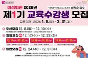 뉴한국방송뉴스통신사 신유철기자 기자 | 부산시 여성회관은 내일(8일)부터 '2026년 제1기 교육과정' 수강생을 모집한다고 밝혔다. 이번 교육과정은 시민들의 취업, 창업 등 경제활동 참여와 직장인 등의 능력 개발을 위해 오는 1월 5일부터 3월 31일까지 약 3개월간 진행된다. ▲공예 ▲미용 ▲요리 ▲커피 ▲제과제빵 ▲봉제 ▲외국어 ▲컴퓨터 ▲노인 교구 등 9개 분야 91개 과목에서 1천7백여 명의 수강생을 모집하며 교육 일은 과목별 사정에 따라 조정될 수 있다. 특히, 취·창업 등에 도움이 되는 자격증 강좌, 기능 생활 교양 강좌와 함께 직장인 등을 위한 야간·주말 강좌도 운영될 예정이다. 자격증 강좌로는 ▲조리기능사(한식/중식) ▲미용사(메이크업/네일/일반) ▲정보기술자격시험(ITQ엑셀) ▲기초토익 ▲화훼장식기능사 등이 마련됐다. 야간 강좌로 ▲커피 바리스타 2급 ▲외국어(영어, 일본어, 중국어) 등과 주말 강좌로 ▲가족 홈베이킹 ▲옷 만들기 ▲캘리그래피 등도 만나볼 수 있다. 강좌에 관심 있는 18세 이상 시민이라면 누구나 수강할 수 있다. 수강 신청은 우선 모집, 일