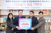 뉴한국방송뉴스통신사 신유철기자 기자 | 양주시사회적경제지원센터가 2025년 사회적경제 나눔장터 기버마켓을 통해 조성된 '기버함' 수익금 363만 원을 지역사회 이웃돕기 성금으로 기탁하며 나눔 문화 확산에 앞장섰다. 성금 기탁식은 10일 오후 2시에 시장실에서 열렸으며, 김도웅 경제문화체육국장, 정미순 지역경제과장, 염일열 사회적경제지원센터장, 최화자 사회적경제협의회 회장, 이정주 자원봉사센터장, 전수경 사무국장 등 관계자 11명이 참석했다. 이번에 기탁된 363만 원은 올해 기버마켓 운영 과정에서 사회적경제기업과 참여 시민들의 자발적 기부로 마련된 금액이다. 수익금은 양주시자원봉사센터에 지정 기탁돼 지역 내 취약계층 지원 사업에 쓰일 예정이다. 염일열 센터장은 “기버마켓이 지역 사회와 사회적경제 조직을 연결하는 의미 있는 플랫폼으로 자리잡고 있다”며 “앞으로도 나눔 활동이 지속될 수 있도록 협력해 나가겠다”고 말했다. 양주시 관계자는 “기부에 동참해 준 사회적경제기업과 시민 여러분께 감사드린다”며 “전달된 성금은 도움이 필요한 가정과 복지 사각지대 해소를 위해 사용될 예정”이라고 전했다. [뉴
