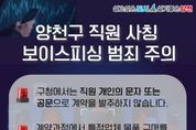 뉴한국방송뉴스통신사 신유철기자 기자 | # 최근 서울 소재 A업체는 가스누설감지기 등을 남품해 달라는 요청을 받았다. 주문자는 양천구청 재무과 소속 진△△ 주무관이라고 자신을 소개하고 견적서와 함께 특정 B업체에서 대리납품하라고 요청했다. 수상함을 느낀 A업체가 재무과 진△△ 주무관을 찾아 문의하니 ‘납품을 요청한 사실이 없다’는 답이 돌아왔다. 양천구(구청장 이기재)는 최근 양천구청 직원을 사칭해 물품대금 선입금을 요구하는 사기 범죄가 급증함에 따라, 유사 피해가 발생하지 않도록 각별한 주의와 함께 선제적인 피해 예방에 나선다고 4일 밝혔다. 최근 사칭 사기범들이 조달청 나라장터와 서울시 계약마당 등에 게시된 관·내외 업체의 계약 이력을 악용해 실제 계약 발주를 가장한 뒤, 물품 대리구매를 명목으로 대금 선입금을 요구하는 사례가 잇따르고 있다. 특히, 실제 구청 직원의 소속과 성명을 사칭해 계약 발주의 진위 여부를 쉽게 판단하기 어렵게 만드는 등 범행 수법이 날로 정교해지고 있다. 한편, 구는 지난 1년간 공무원 사칭 사기 시도 사례 50여 건을 확인했다. 이 중 대부분은 업체가 사전에 의심해