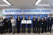 뉴한국방송뉴스통신사 신유철기자 기자 | 울산광역시교육청과 인천광역시교육청이 4일 오후 4시 울산교육청 접견실에서 교육·연구 분야 교류 활성화를 내용으로 하는 업무협약을 했다. 이번 협약은 두 교육청이 상호 신뢰와 협력을 바탕으로 독서·인문교육과 연구 분야 발전을 도모하고, 지역 문제 해결과 사회 공헌을 위한 공동 프로그램 개발을 함께 추진하고자 마련됐다. 두 교육청은 이번 협약으로 교육·연구 분야 교류 활성화를 위한 다양한 프로그램을 공동 운영하고, 상호 연계로 교육 발전을 꾀한다는 방침이다. 또한 지역사회의 문제해결과 공공 가치를 실현하는 사회 공헌 프로그램을 공동 개발하고 운영하는 데 협력하기로 했다. 특히, 울산광역시교육청의 대표 독서인문교육 프로그램 ‘책크인’ 과 인천광역시교육청의 대표 독서교육 프로그램 ‘읽걷쓰’를 연계해 두 기관의 우수 교육 자료(콘텐츠)를 상호 공유하고 발전시킬 계획이다. ‘책크인’은 ‘책으로 크는 우리 아이’와 ‘독서의 세계로 체크인(check-in)한다’는 의미를 담아 학생의 성장과 독서 문화 확산을 목표로 한다. ‘읽걷쓰’는 읽기(문해력),