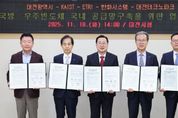 뉴한국방송뉴스통신사 신태공 기자 | 대전시는 18일 시청에서 KAIST, 한국전자통신연구원(ETRI), 한화시스템, 대전테크노파크와 ‘국방·우주반도체 국내 공급망 구축을 위한 업무협약’을 체결했다. 이날 협약식에는 이장우 대전시장, 이광형 KAIST 총장, 방승찬 ETRI 원장, 손재일 한화시스템(주) 대표, 김우연 대전테크노파크 원장이 참석했다. 이번 협약은 국가 안보에 필수적인 국방·우주반도체 개발 및 제조 생태계 구축을 목표로 한다. 협약 기관들은 ▲반도체 국산화 및 성능 고도화를 위한 공동 연구개발 ▲공정개발 및 제조를 위한 공공팹(fab) 구축 ▲전문인력 양성 등 다방면에서 협력하기로 했다. 최근 세계 4대 방산 강국 도약을 목표로 급성장 중인 K-방산 산업과 민간이 주도하는 ‘뉴스페이스(New Space)’ 시대의 우주산업에서 핵심 반도체의 외국 의존도가 높아 안정적 공급망 확보가 국가 경쟁력의 핵심 과제로 떠오르고 있다. 이를 해결하기 위해 방위사업청은 지난해 국방반도체사업단을 대전에 개소하고, 국방반도체 국내 생산능력 확보를 골자로 한 국방반도체 발전 전략을 수립했다. 또한 우주항공청