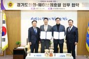 뉴한국방송뉴스통신사 신유철기자 기자 | 경기도의회는 4일 오후 의장 접견실에서 시흥 소재 웨이브엠 호텔(대표 천수봉)과 ‘도의원 및 직원 복지 증진과 지역 내 관광·숙박업 활성화를 위한 업무협약’을 체결했다. 이번 협약은 도의회 구성원의 복지 수준을 높이는 동시에, 지역 내 숙박·관광 산업의 경쟁력 강화와 상생 협력 기반을 마련하기 위해 추진됐다. 업무협약식에는 김진경 의장(더민주·시흥3)과 김종배 의원, 임채호 의회사무처장 및 웨이브엠 호텔 대표 등이 참석했다. 이날 양 기관은 ▲객실 및 부대업장 이용 시 할인 제공(객실 20% 할인 등) ▲조식 할인 및 객실 이용 시 1인 조식 무료 제공 ▲행사 개최 등 다양한 분야에서의 상호 협력 추진 등에 대한 업무협약을 체결했다. 김진경 의장은 “이번 협약을 통해 도의원과 직원들은 좋은 시설을 편리하게 이용할 수 있게 되고, 동시에 지역 관광 및 숙박 산업에도 의미 있는 보탬이 될 것”이라며 “경기도의회와 지역 기업이 서로 신뢰를 쌓고 협력의 폭을 넓힌다는 점에서 협약의 의미가 크다”라고 기대했다. 이어 “오늘의 협약이 단순한 혜택 제공을 넘어