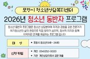 뉴한국방송뉴스통신사 신유철기자 기자 | 포항시청소년재단 청소년상담복지센터는 고위기 청소년을 대상으로 생활 현장을 직접 찾아가 지원하는 ‘2026년 청소년동반자 프로그램’을 연중 운영한다. 청소년동반자 프로그램은 청소년 상담 분야에 자격을 갖춘 전문 인력이 위기 청소년을 직접 찾아가 심리·정서적 지지와 맞춤형 상담을 제공하는 현장 중심 서비스다. 센터는 지역 학교 및 유관기관과의 협력 네트워크를 통해 위기 청소년을 조기에 발굴하는 데 주력하고 있다. 특히 청소년 개별 특성에 적합한 맞춤형 서비스를 제공할 수 있도록 신속한 개입 체계를 강화했다. 특히 올해는 상담의 접근성을 높이기 위해 남구 지역에 상담센터 분소를 개소했다. 이를 통해 기존 센터 방문이 어려웠던 청소년들이 보다 가까운 곳에서 전문 상담 서비스를 이용할 수 있도록 지원 기반을 확대했다. 지난해 포항시청소년상담복지센터 청소년동반자사업은 상담·심리 지원 1만 531건을 포함해 생활, 건강, 돌봄·보육, 교육 등 다양한 영역에서 총 1만 817건의 지원 실적을 기록했다. 유성재 포항시청소년상담복지센터장은 “위기 상