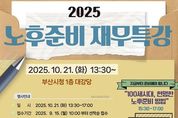 뉴한국방송뉴스통신사 신유철기자 기자 | 부산시는 내일(21일) 오후 1시 30분 시청 대강당에서 '2025년 부산시민 노후준비 재무특강'을 개최한다고 밝혔다. 이번 특강은 노후를 준비하는 시민들이 스스로 재무 상황을 점검하고 안정적인 노후설계를 실천할 수 있도록 지원하기 위해 마련됐다. 광역노후준비지원센터로 지정된 시 장노년일자리지원센터가 행사를 주관한다. 특강은 2개 과정으로 구성되며, 유능한 전문 강사들이 수준 높고 알찬 강의를 펼친다. 먼저, 이경주 국민연금공단 전문 강사가 ‘평생월급 프로젝트’를 주제로 강의한다. 공적연금 제도의 이해와 연금 수급 전략, 소비와 저축 등 노후소득 보장체계와 합리적인 경제 습관에 대해 알기 쉽게 설명한다. 다음으로, 경제 시사 평론가(칼럼니스트) 김경필 작가(머니트레이닝랩 대표, 유튜브 채널 ‘돈쭐남’)가 ‘100세 시대, 현명한 노후준비 방법’을 주제로 강의한다. 변화하는 금융 환경 속에서 중장년층이 반드시 알아야 할 자산관리 원칙과 재테크 전략을 시민의 눈높이에 맞춰 전달할 예정이다. 노후 준비에 관심 있는