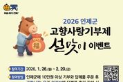 뉴한국방송뉴스통신사 양호선기자 기자 | 인제군은 2026년 설 명절을 맞아 고향사랑기부제 참여 확산을 위한 특별 이벤트를 오는 1월 26일부터 2월 20일까지 진행한다. 이번 이벤트는 인제군에 10만 원 이상 기부하고, 고향사랑e음 또는 위기브를 통해, 주문한 답례품 후기를 작성하면 자동으로 응모되는 방식으로 운영된다. 응모자 가운데 추첨을 통해 30명을 선정해 강원한우 사골곰탕 선물세트를 제공하며, 당첨자는 2월 23일 이후 개별 문자로 안내할 예정이다. 기부는 온라인 플랫폼인 고향사랑e음과 위기브, 또는 전국 농협은행·농축협 지점을 통해 가능하다. 군은 이번 이벤트를 통해 고향사랑기부제에 대한 인지도를 높이고, 명절을 계기로 기부 참여를 확대해 지역경제 활성화로 이어간다는 계획이다. 김장웅 인제군 지역발전과장은 “설 명절을 맞아 고향을 응원하는 마음이 자연스럽게 기부로 이어질 수 있도록 이번 이벤트를 마련했다.”며 “고향 사랑기부제가 지역에 실질적인 도움이 되는 제도인 만큼 많은 관심과 참여를 바란다.”고 말했다. 한편, 고향사랑기부제는 개인이 주소지 외 지방자치단체에