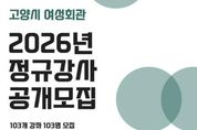 뉴한국방송뉴스통신사 신유철기자 기자 | 고양특례시 여성회관에서 2026년 정규강좌 운영을 위한 정규강사진을 공개 모집한다. 고양시 여성회관은 지난 9월 고양시민 및 수강생 대상으로 실시한 수요조사 결과를 바탕으로 2026년도에 103개 강좌를 개설할 예정이다. 이에 따라 ▲컴퓨터⸱IT ▲외국어 ▲의상 ▲제빵⸱떡 등 10개 분야 103명의 전문 강사를 모집한다. 강사 지원 서류 접수 기간은 10월 27일부터 10월 30일까지이며, 고양시 여성회관 누리집을 통해 신청이 가능하다. 강사 지원자는 3개 강좌(주 14시간 강의 시간 이내)까지 지원할 수 있으며, 1차 서류 심사 및 2차 면접 심사를 거쳐 각 분야⸱지원 강좌별 고득점자 순으로 선발한다. 시 관계자는 “고양시 여성회관은 다양하고 질 좋은 강좌 운영을 통해 수강생들의 자기개발 및 삶의 질 향상을 위해 노력하고 있다”며, “앞으로 여성회관 정규강좌를 함께 이끌어갈 우수한 강사님들의 많은 지원을 바란다”고 말했다. [뉴스출처 : 경기도 고양시]