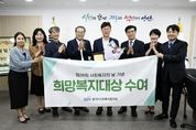뉴한국방송뉴스통신사 신유철기자 기자 | 안산시는 지난 19일 경기도 ‘제26회 사회복지의 날’을 기념해 ‘희망복지대상’ 감사패를 전달받았다고 22일 밝혔다. 지난해 제정된 희망복지대상은 선도적 사회복지 발전을 위한 시정 정책을 실현하고 사회복지종사자의 지위 향상 및 처우 개선을 위해 다양한 지원책을 추진한 지방자치단체장에게 수여되는 상이다. 올해는 안산시와 수원시가 각각 수상의 영예를 안은 가운데, 지난 19일 안산시청사에서 열린 전달식에서는 강기태 경기도사회복지협의회 회장이 직접 방문해 이민근 시장에게 감사패를 전달했다. 안산시는 사회복지종사자 처우 개선을 위해 ▲장기근속자 감사패 수여 ▲안산형 복지포인트 지원 ▲청년 종사자 힐링워크숍 개최 ▲건강검진비 지원 추진(2026년 예정) 등 체감할 수 있는 다양한 정책을 추진해 온 점에서 높은 평가를 받았다. 시는 앞으로도 민·관 협력을 강화해 복지 현장의 목소리가 반영되는 정책을 펼쳐나감으로써 지속 가능한 복지 도시 실현에 힘쓴다는 방침이다. 이민근 안산시장은 “이번 수상은 현장에서 헌신하는 사회복지 종사자들과 함께 나누어야 할 성과”라며