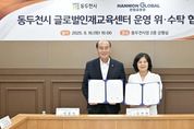 뉴한국방송뉴스통신사 신유철기자 기자 | 동두천시는 지난 16일 시청 2층 상황실에서 글로벌인재교육센터 운영 수탁기관으로 선정된 ㈜한원글로벌과 운영 위·수탁 협약을 체결했다. 수탁기관 ㈜한원글로벌은 인천광역시에 위치한 교육 전문기관으로 ▲연수구 국제언어체험센터 위탁 운영 ▲ELTIS(국제학생 영어 능력 시험) 운영 등 국제언어 교육 경험을 풍부하게 보유하고 있다. 이번 협약으로 2025년 9월부터 2028년 8월까지 3년간 동두천시민의 글로벌 역량 강화를 위한 다양한 교육 사업을 추진할 계획이다. 협약에 따라 동두천시는 ㈜한원글로벌에 ▲외국어 학습 및 체험형 융합교육 프로그램 개발·운영 ▲일반·다문화 학생이 함께하는 프로그램 기획·운영 ▲시민 글로벌 역량 강화 교육 등 센터 운영 및 관리 전반을 위탁한다. 박형덕 시장은 “이번 협약을 통해 글로벌인재교육센터가 지역 학생들에게 국제적 경험을 제공하고 미래 인재로 성장하는 발판이 되길 기대한다”라며 “학생과 시민이 함께 참여할 수 있는 다채로운 프로그램으로 글로벌 경쟁력을 높여 나가겠다”라고 밝혔다. 김한경 대표도 “동두천시와 긴밀히 협력해 학생들이 세계