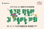 뉴한국방송뉴스통신사 김성의 기자 | 광주 동구는 11월 1일 오후 3시 30분 전일빌딩 245 전일마루에서 시민과 함께하는 ‘2025 올해의 책 독서토론마당’을 개최한다고 밝혔다. 이번 행사는 단순한 독서 행사를 넘어 가족과 학교, 독서동아리 등 다양한 독서공동체가 모여 ‘웅크린 말들에 귀 기울이는 사회’를 주제로 서로의 생각을 나누는 시간으로 꾸려진다. 이날 토론회에서는 ‘2025 올해의 책’으로 선정된 ‘바나나가 더 일찍 오려면’(정진호), ‘꿈을 걷는 소녀’(백혜영), ‘축복을 비는 마음’(김혜진) 등을 다룬다. 사회는 문학평론가 이소(광주대 문예창작과 교수)가 맡으며, 전문가 패널과 청소년·시민 대표가 참여해 세대 간의 의견을 나누는 방식으로 진행된다. 토론회에는 사전 모집한 청중 50여 명이 참여해 책을 읽지 않았더라도 사회적 주제에 관한 생각을 현장에서 나눌 수 있는 열린 토론으로 진행되는 것이 특징이다. 토론회는 세 작품이 전하는 사회적 메시지와 인간적 성찰에 주목하며, 일상 생활에서 잘 들리지 않던 ‘웅크린 말들’, 즉 사회의 작은 목소리에 귀 기울이는 시간을 제공할 예정이다. 참가자