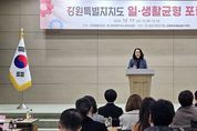 뉴한국방송뉴스통신사 신유철기자 기자 | 강원특별자치도는 12월 17일 강원특별자치도와 강원특별자치도경제진흥원이 공동 주최하고, 강원특별자치도여성가족연구원과 강원여성새로일하기센터가 주관하여 강원특별자치도여성가족연구원 1층 강당에서 '강원특별자치도 일·생활균형 포럼'을 개최했다. 이번 포럼은 여성의 경력단절을 예방하고, 저출산 및 지역소멸 극복을 위해 지역사회 전반에 일·생활 균형 문화를 확산하기 위한 담론장으로 마련됐다. 포럼에서는 '강원특별자치도 일·생활균형 실태조사' 결과를 공유하고, 행정·기업·노동·지역 현장 등 다양한 주체가 참여한 토론을 통해 강원지역의 여건을 반영한 정책 방향과 실행 과제가 논의됐다. 좌장은 정구연 교수가 맡았다. 토론에는 박관희 강원특별자치도의원, 이지영 강원교통방송 편성국장, 남미영 한국여성경제인협회 강원지회 명예회장, 김재중 한국노동조합총연맹 강원도지역본부 의장, 박옥희 엔씨스마트컨설팅 대표(가족친화인증 평가위원), 윤수경 강원광역여성새로일하기센터 센터장, 유효숙 강원특별자치도 여성청소년가족과 팀장이 참여해 분야별 현장 경험과 제도 개선 의견을 공유했다. 정영미 강원특