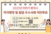 뉴한국방송뉴스통신사 신유철기자 기자 | 통영시에서는 적극행정·협업 분위기 확산을 위한 '2025년 하반기 통영시 적극행정 및 협업 우수사례 국민투표'를 12월 15일부터 18일까지 소통24 국민심사를 통해 진행한다고 밝혔다. 이번 투표는 시민의 눈높이에서 체감할 수 있는 적극행정을 펼친 우수공무원 및 지방공공기관 직원을 선발함으로써 공직 전반에 능동적이고 책임 있는 행정문화를 확산시키기 위해 마련됐다. 특히, 단순한 개인 성과를 넘어 부서 간 칸막이를 허물고 함께 문제를 해결한 협업 우수사례를 추가로 공모해 평가의 폭을 넓혔다. 시는 적극행정 인센티브뿐만 아니라 협업을 통해 시너지를 창출한 우수사례를 선정해 부서평가 가점 및 우수공무원 인센티브를 지급함으로써 조직 내 협력과 소통 중심의 근무 문화를 더욱 장려한다는 방침이다. 천영기 통영시장은 “상반기 투표를 통해 시민참여형 적극행정의 의미와 가능성을 확인했다”며 “이번 하반기에는 협업 우수사례까지 발굴 확대해 개인의 노력은 물론 조직 전체가 함께 성장하는 행정문화를 만들어가겠다. 시민 여러분들의 많은 관심과 적극적인 참여를 부탁드린다”고 전했다.