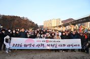 뉴한국방송뉴스통신사 신유철기자 기자 | 의정부시의회는 지난 1일 병오년 새해를 맞아 지역 주민들과 함께 걸으며 희망찬 2026년을 시작할 수 있도록 ‘해맞이 산책, 하천길 따라 새빛정원까지’ 신년 해맞이 행사에 참석했다. 이번 행사는 ▲호원 생활체조광장에서 출발해 ▲신의교~신곡교 중간지점 벽천분수 ▲동오역 생활체조광장 ▲경기도청 북부청사역 인근 벽천분수를 거쳐 ▲신곡새빛정원까지 이어지는 릴레이 산책 코스로 진행됐다. 해맞이 행사에는 시민들과 함께했으며, 15개 동 통장협의회가 행사 준비와 운영에 참여해 중랑천, 부용천 산책로를 걸으며 새해에도 시민들과의 공동체 의식을 함양하고자 마련됐다. 김연균 의장을 비롯한 권안나 부의장과 의정부시장, 의정부시통장협의회 등이 참석했다. 행사에 참석한 의원들은 “희망과 도약을 상징하는 붉은 말의 해를 맞아 시민들과 첫 해맞이를 함께하게 되어 더없이 기쁘다며” “올 한 해 더욱 시민들의 목소리에 귀 기울이고 함께 공감·소통하며, 의정부시의 발전을 이끄는 의정부시의회가 되도록 노력하겠다”고 전했다. [뉴스출처 : 경기도 의정부시의회]