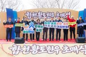 뉴한국방송뉴스통신사 신유철기자 기자 | 합천군은 합천축협과 함께 지역 대표 브랜드인 합천황토한우의 우수성을 알리고, 지역 한우산업 경쟁력 강화를 기원하고자 ‘합천황토한우 초매식’을 개최했다. 이번 초매식은 1월 29일 합천축협 스마트한우경매시장에서 열렸으며, 김윤철 합천군수, 정봉훈 합천군의장과 합천군의회 의원, 김용욱 합천축협 조합장, 김종배 전국한우협회합천군지부장과 한우 사육농가 등 약 100여 명이 참석해 행사의 의미를 더했다. 합천황토한우는 1999년 특허청 브랜드로 등록되어 합천군과 합천축협이 함께 운영하고 있는 한우 브랜드로, 16개월 이상 자체 사양관리 프로그램에 따라 합천축협이 생산하는 황토가 첨가된 전용 사료를 급여한 한우만을 출하하고 있으며, 부드러운 육질과 뛰어난 향미가 일품이다. 이번 초매식 개최지인 합천축협 스마트한우경매시장은 2021년 실시간 스마트 경매시스템을 도입하여 연간 9천두 이상의 한우를 경매하는 대규모 경매시장으로 매주 첫째주 목요일에는 큰소 경매를, 둘째 넷째주 목요일에는 송아지 경매를 실시하고 있으며, 이날 초매식에는 송아지 274마리가 출품되며 성황리에 진행됐다. &nb