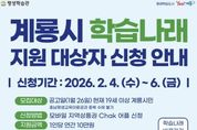 뉴한국방송뉴스통신사 신태공 기자 | 충남 계룡시는 2026년 학습나래 사업을 본격 시작한다고 밝혔다. 올해 학습나래 사업은 공고일(1월 26일) 현재 19세 이상 계룡시민을 대상으로, 1인당 연간 10만 원의 평생학습 지원금을 총 1,100명에게 지급해 시민들의 자기계발과 역량 강화를 지원할 예정이다. 지원 대상자 신청은 오는 2월 4일부터 2월 6일까지 모바일 지역사랑상품권 Chak 어플을 통해 접수하며, 전산 추첨으로 대상자를 선정 3월 초 모바일 계룡사랑상품권(정책수당)으로 지급할 계획이다. 지급된 학습나래 지원금은 오는 10월 31일까지 관내 75개소의 학습기지에서 사용할 수 있다 특히 2026년 학습나래 사업은 몇 가지 변경 사항이 있어 주의가 필요하다. 먼저, 선정자 본인이 1개월 이내에 선정 취소를 가능하게 하고, 사업기간 내 전액 미사용자에 대해서는 다음 2년간 선정에서 배제하여 미사용으로 회수되는 일을 최소화하고자 했다. 또한, 부정 사용자에 대한 제재로 다음 3년간 선정 배제를 명시하여 학습나래가 취지에 맞게 잘 쓰여질 수 있도록 할 예정이다.
