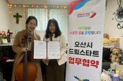 뉴한국방송뉴스통신사 신유철기자 기자 | 오산시는 지난 6일 기쁨피아노학원과 드림스타트 대상 아동을 위한 음악교육 지원 업무협약을 체결했다고 밝혔다. 이번 협약은 경제적 부담으로 학원 이용이 어려운 취약계층 아동에게 지역 자원을 연계해 학습 및 예체능 프로그램을 제공하기 위해 추진됐다. 특히 기초학습 지원을 넘어 아동의 흥미와 적성 개발을 돕기 위한 드림스타트 학원 연계 사업 ‘꿈트리 아카데미’의 일환으로 마련됐다. 협약에 따라 드림스타트 대상 아동들은 기쁨피아노학원에서 피아노 수강 시 학원비 일부를 지원받게 된다. 금암동에 위치한 기쁨피아노학원 오임경 대표는 “아이들이 음악을 배우며 자신감을 갖고 즐겁게 학교생활을 하길 바란다”며 “예체능적 재능을 발견하고 꿈을 키워갈 수 있도록 적극 지원하겠다”고 말했다. 박현주 오산시 아동복지과장은 “이번 협약을 통해 취약계층 아동들이 보다 공평한 교육 기회를 얻을 수 있을 것으로 기대한다”며 “앞으로도 지역 자원과 연계한 아동 지원을 지속적으로 확대해 나가겠다”고 말했다. 한편 오산시는 앞으로도 지역사회 자원을 활용한 다양한 교육 지원 사업을 통해