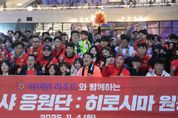 뉴한국방송뉴스통신사 신유철기자 기자 | 강원특별자치도는 11월 4일 오후 5시 30분, 일본 히로시마 에디온 피스 윙 스타디움 원정석 게이트 앞에서 ‘강원FC 승리기원 행사’를 개최했다고 밝혔다. - 이번 행사는 2024~2025 아시아 챔피언스리그 조별리그 원정경기를 앞두고 선수단의 선전을 기원하고, 원정응원단을 격려하기 위해 마련됐다. 이 자리에는 김진태 도지사, 김시성 도의회의장을 비롯한 도 대표단, 주히로시마 총영사관, 현지교민, 히로시마 청소년문화센터 청소년, 강원FC 팬 등 '강원이나르샤 응원단' 약 200명이 참석했다. 이날 현장에서는 팬 선발 경쟁률 5.56대 1(신청자 556명, 선정자 100명)을 뚫고 일본 원정길에 오른 강원 FC 팬들이 히로시마 현지 청소년과 교민들과 함께 뜨거운 응원전을 펼치며 열기를 더했다. 히로시마 청소년 아카사카 마유카 학생은 한국어로 “오늘 이렇게 강원FC 경기를 직접 볼 수 있어 영광”이라며, “친구들과 이 자리에 함께한 분들과 진심으로 응원하겠다”고 말했다. 김시성 의장은 “승리를 위해 우리가 똘똘 뭉쳐 응원을 잘해야 한다”며, “응원