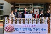 뉴한국방송뉴스통신사 신유철기자 기자 | 미추홀구를 사랑하는 사람들의 모임(회장 추연옥)은 지난 21일 인천 미추홀구(구청장 이영훈)에 저소득층 지원을 위한 고구마 3kg 150상자(약 225만 원 상당)를 전달했다. 이번 기부는 지역 내 어려운 이웃들의 건강한 식생활을 돕고, 따뜻한 나눔 문화를 확산하기 위해 마련됐다. 전달된 고구마는 관내 저소득 가정에 전달돼, 이웃사랑 실천에 큰 도움이 될 예정이다. 추연옥 회장은 “미추홀구를 사랑하는 마음으로 작은 정성을 모았다.”라며, “앞으로도 지역사회와 함께하는 다양한 나눔 활동을 이어가겠다.”라고 전했다. 이영훈 구청장은 “미사모의 따뜻한 나눔과 지속적인 사회공헌 활동에 깊이 감사드린다.”라며, “이번 기부가 지역 내 도움이 필요한 분들에게 실질적 지원이 되고 나눔 문화 확산에도 큰 힘이 되길 바란다.”라고 말했다. 한편, 미사모는 매년 저소득층을 위한 후원 및 자선행사를 꾸준히 이어오고 있으며, 올해는 직접 담근 오이지를 관내 독거노인 등에게 전달하는 등 지역사회 복지 향상에 앞장서고 있다. [뉴스출처 : 인천시미추홀구]