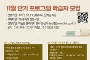 뉴한국방송뉴스통신사 신유철기자 기자 | 인천광역시교육청평생학습관은 오는 11월 운영되는 단기 프로그램의 수강생을 모집한다. 이번 프로그램은 AI(인공지능)·디지털 활용 능력 강화와 인문소양 증진을 주제로 시민들이 짧은 기간 내 배움을 얻을 수 있도록 기획됐다. 운영 강좌는 ▲스마트폰영상편집2 ▲AI(인공지능)와 함께 만드는 그림책2 ▲AI(인공지능)를 활용한 작사·작곡하기2 ▲(시니어) 연말연시는 숏츠와 함께 영상 카드 만들기 ▲한국미술 시대를 잇다: 전통에서 발견하는 현대 등 5개다. 디지털 역량 강좌 4개는 급변하는 환경에 대응해 시민의 정보 활용 능력을 높이는 데 중점을 두었으며, 인문교양 강좌는 전통과 현대미술을 잇는 인문학적 접근을 통해 문화 감수성을 높이는 기회를 제공한다. 수강 신청은 10월 23일 오전 10시부터 평생학습관 누리집에서 가능하며, 자세한 사항은 공지사항에서 확인하거나 평생교육부로 문의하면 된다. [뉴스출처 : 인천시교육청]